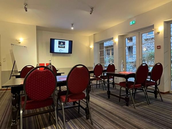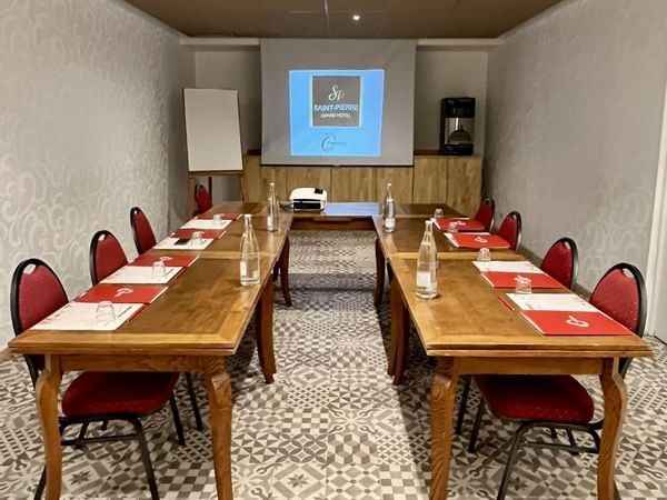 Situé à moins de 5min à pied du Centre de Congrès d'Aurillac et à 5 minutes de route de la gare SNCF, The Originals Boutique, Grand Hôtel Saint-Pierre est le lieu idéal pour l’organisation de vos séminaires et réunions professionnelles. En fonction de vos besoins vous pourrez en effet choisir entre deux salons parfaitement équipés pouvant accueillir jusqu'à 60 personnes.