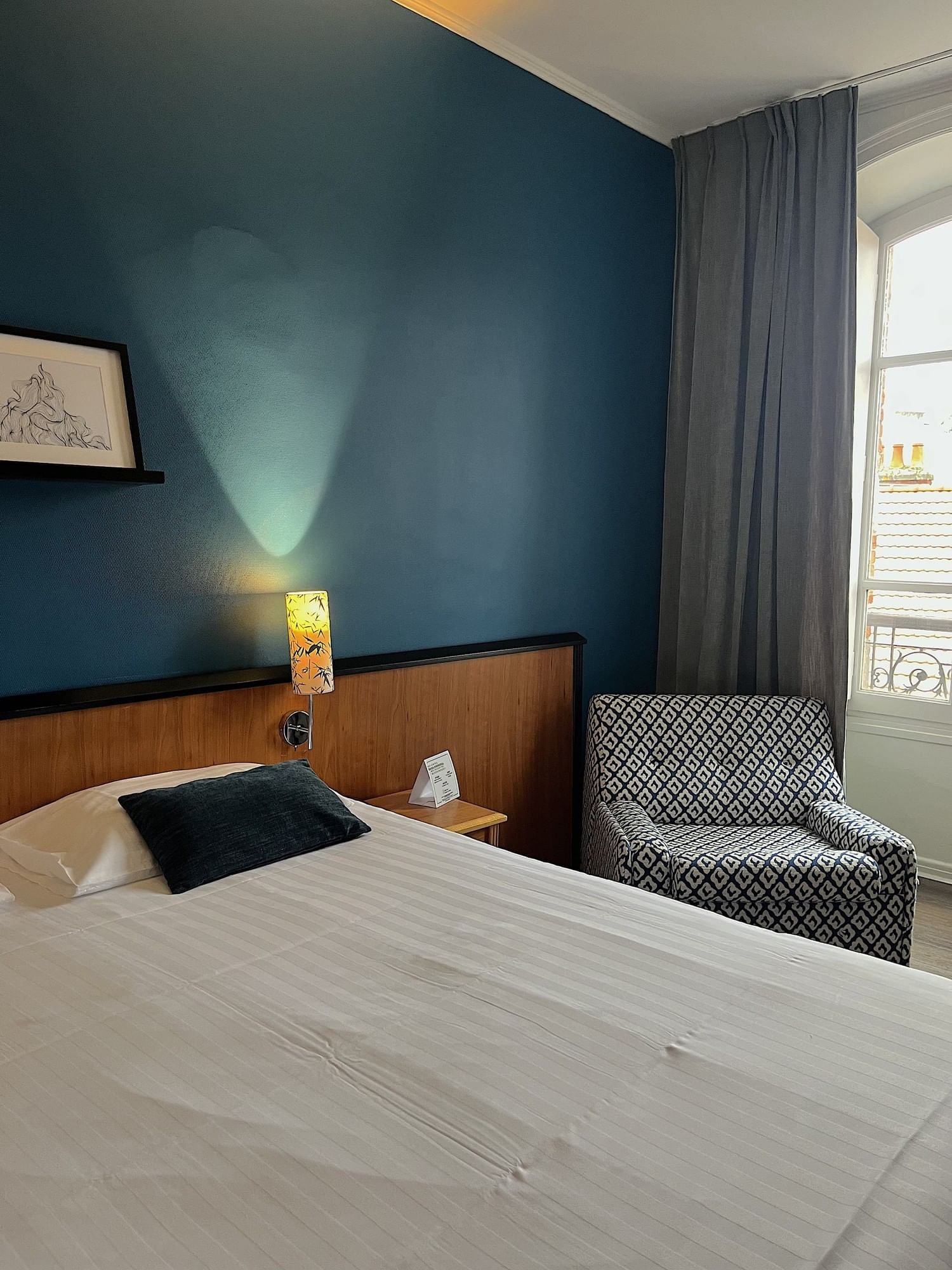 Cette grande chambre dispose d'un lit king size pour une ou deux personnes, elle vous offrira le meilleur du confort, rénovée avec gout et spacieuse.